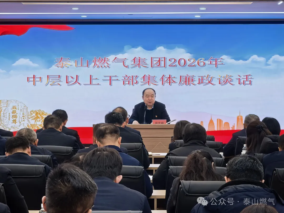 为全面压实2026年度党风廉政建设责任,筑牢干部廉洁从业思想防线与行为底线,近日,泰岳燃气、泰山燃气集团开展2026年度集体廉政谈话暨党风廉政建设责任书签订仪式。集团中层以上干部、各控股单位领导班子成员、参股公司高级管理人员及重点岗位关键人员共计90余人参会。