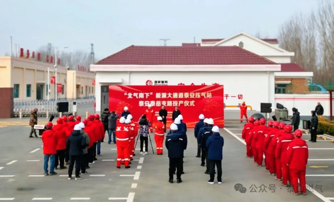 1月30日上午,“北气南下”能源大通道泰安压气站泰安泰岳支路正式投产运行。泰山城建集团党委书记、董事长赵传星,国家石油天然气管网集团有限公司山东分公司泰安作业区党支部书记、经理黄鑫,泰安市岱岳区道朗镇党委书记陈思亮,泰安市泰岳燃气有限公司党支部书记、执行董事、总经理陈世峰及各参建单位代表共40余人出席投产仪式。